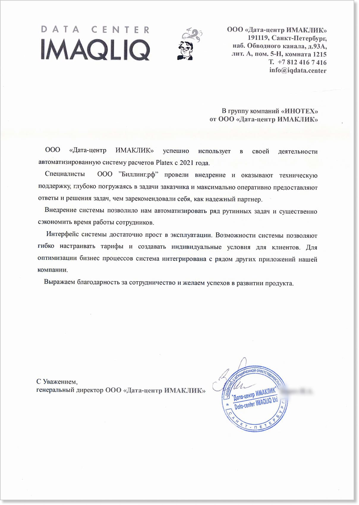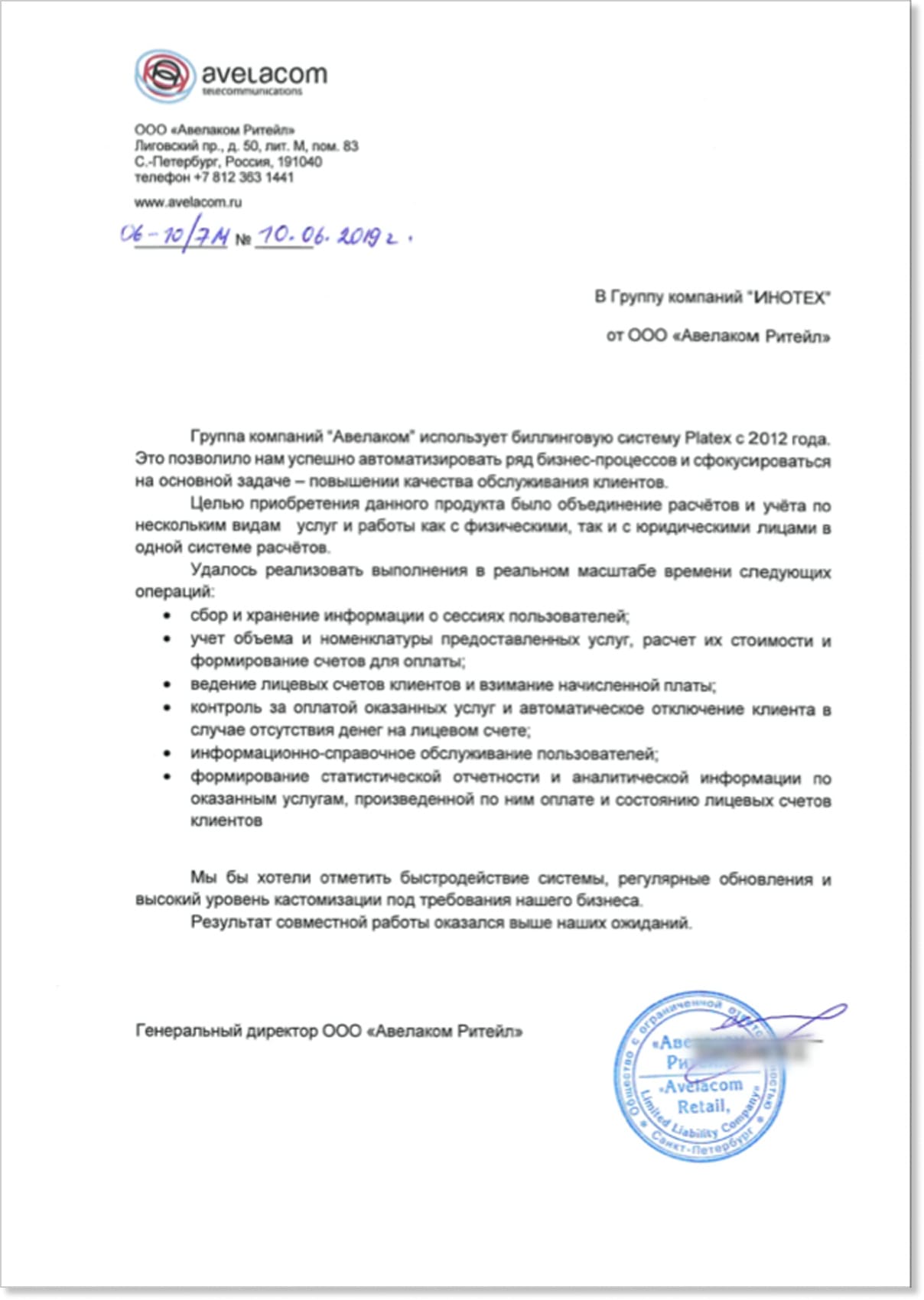 Компания «Биллинг.РФ» входит в группу компаний ИНОТЕХ, которая работает на рынке услуг связи с 1999 года. Офис компании находится в Санкт-Петербурге. У нас работает команда профессионалов, как главное конкурентное преимущество, с большим опытом разработки программного обеспечения в сфере телекоммуникаций любой сложности